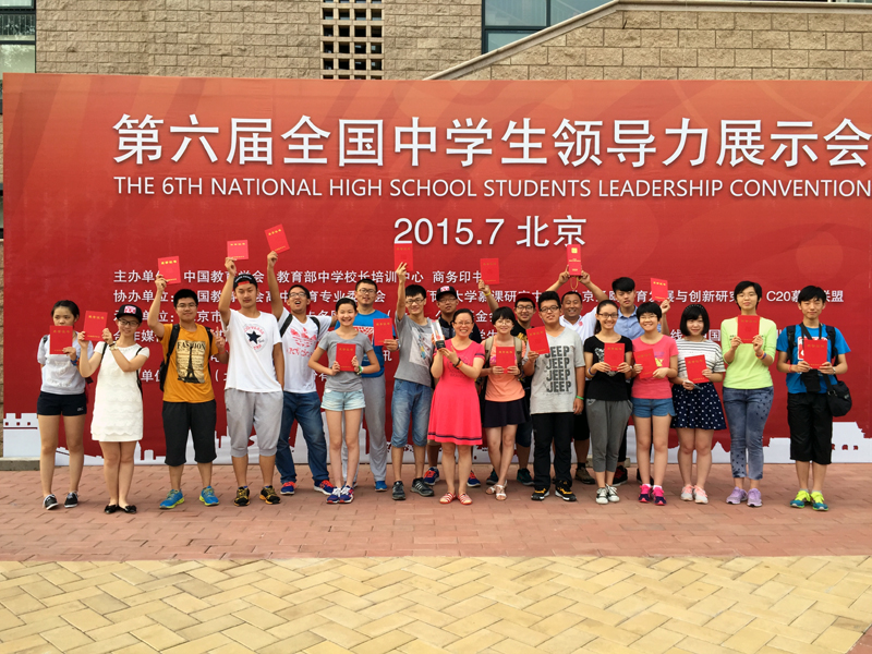 2015年7月24-30日,泰安一中领导力协会的20名同学在领导力指导教师的带领下,参加了在北京举办的“第六届全国中学生领导力展示会”。由于我校在中学生领导力培养方面的突出贡献,中国教育学会特别授予我校“名校社会责任担当奖”。 “第六届全国中学生领导力展示会”由中国教育学会主办,以“引领学生新风尚,共享项目新体验,开启公益新主张”为主题,全面展示一年以来各学校开展综合实践的成果,来自全国各地共70多所学校千余名优秀学生代表、教师代表参加了本次活动。 整个活动分三轮展开,第一轮是优秀项目展示,选手以学校为单位,代表学校进行展示。泰安一中以团体一等奖的优异成绩晋级第二轮比赛。第二轮是微项目实践与展示,全部选手被随机分组,每组10人,确定具体主题,在规定的时间内完成项目行动方案设计。本轮比赛中,我校有六名同学凭借最佳项目奖的优异成绩进入第三轮。第三轮为个人展示,选手就指定的话题展开无领导小组讨论,分析实际案例。经过激烈的角逐,我校嘉措同学凭借卓越的表现荣获本次大赛的“全国年度中学生领袖提名奖”。