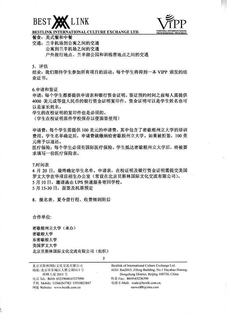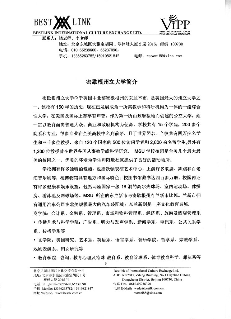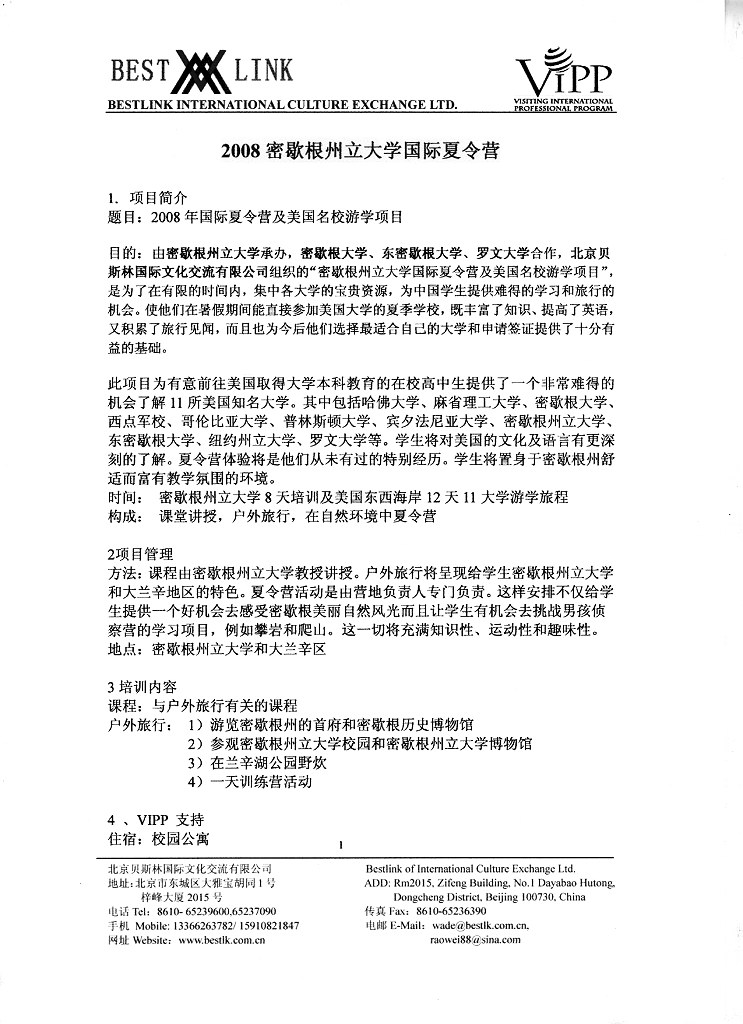 2008密歇根州立大学国际夏令营