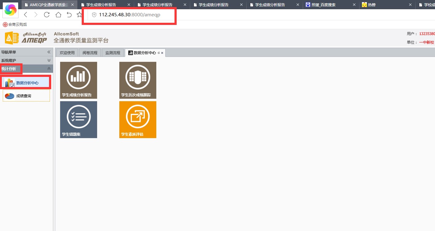 3、选择左侧统计分析-数据分析中心,点击学生成绩分析报告。