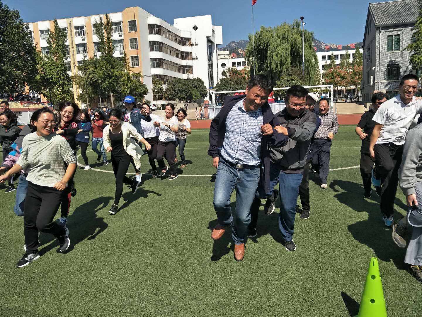 泰安一中2018年教职工运动会于9月29-30日隆重举行,本次运动会设置了男女老年组、中年组和青年组三个组别。来自全校的400多名教师分别参加了男女“足球定点射门”、“实心球投准”、“篮球定点投篮”3个单项项目和“4×100米”接力、“5人踩木屐接力”、“10人单脚火车跑得快”3个集体项目的比赛。 比赛期间老师们奋力拼搏,你追我赶,气氛热烈,笑声不断,既赛出了风格,又赛出了集体凝聚力,充分展现了我校广大教职工健康快乐的运动风采和积极向上的精神风貌。 (工会)