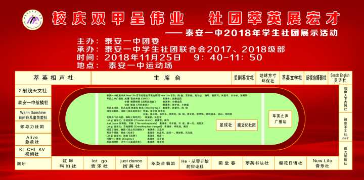 以“你好,萃英!”为主题的泰安一中社团展示活动于2018年11月25日在泰安一中青年路校区成功举行! 本次社团展示活动是由校团委主办,2017级学生会承办,以丰富学生课余生活,提高学生对课外实践活动的参与感,同时提升学生领导力为目的的大型社团联合展示活动。学生会筹办积极,同学们参与热情空前高涨。 全场活动分为两部分,即“主席台大型展演”与“社团个体小型展演”,两者相得益彰,让参加活动的每一位学生都能感受到我校社团文化的独特魅力。 台上节目精彩纷呈:既有青春奔腾的劲曲——《Hand Clap》,也有悠扬悦耳的合唱——《风吹麦浪》;既有活力奔放的舞蹈——《The next episode》;也有妙趣横生的话剧——《国王的新衣》。 我校学生社团人才济济:来自let go音乐社的阚月曾获全国吉他指弹大赛第一名,她为我们演奏了有“断弦神曲”之称的《thunderstruck》,赢得台下阵阵掌声。来自萃英相声社的陈文哲身穿长袍走上台来,妙语连珠地为我们带来评书《三英战吕布》,古老的三国故事在他的表演下变得鲜活生动起来,同学们纷纷为他喝彩。 台下活动也多姿多彩:藏文化社团的藏族同学身着藏族服饰载歌载舞,用藏文书写明信片赠与内地同学,彰显民族团结与同学友爱。 足球社的活动同样吸引眼球,足球社的成员表演了难度级别较高的对垫、吊准等节目,并开展了激烈的比赛,赢得老师、同学的齐声喝彩。 文学社编纂出版发行的新一期《萃英志》在社展上出售,成为众多娱乐活动中最为特殊的一股清流。《萃英志》凝结了文学社社长、副社、主编、编辑等人的心血,以及全体作者的不懈努力,编委会审阅了上百篇来稿、增删数十次,才正式出版。《萃英志》区别于其他学校纯作文式的校刊,更不同于市面上的流行小说,叙说了现阶段高中生的理想、执着与追求,抒发了萃英情怀,读来让人与之产生共鸣。文学社的文学常识有奖竞猜以及三行诗活动更是吸引了众多同学的参与,在竞猜中学习知识、在短诗中抒发情怀,弘扬了真正的文学,可谓本次社展活动的一大亮点! alive急救社作为官方社会实践组织社团,请来了专业的医护人员为同学们讲解医疗急救常识,并带领感兴趣的同学现场在假人身上模拟急救,使同学们学到了基本的救护常识,教育意义深远。 辩论社准备了辩论资料供同学们查阅,展示了辩论赛比赛图片(包括校赛省赛表演赛),并由经验丰富的学长现场解答辩论赛的问题,使同学们获得了丰富的辩论知识。 樱花日语社也以日语教学、典籍研读、兴趣交流等方式来开拓同学们的视野,让同学们更好的走向世界、了解世界文化,现场更有coser进行宣传,伴有精彩的歌舞吸引人气。 花容天下古风社以其独特的传统文化魅力吸引了同学们的关注,汉服、古琴、头饰等诸多带有古风元素的作品展示让同学们赞不绝口,古风社宣扬了传统文化、展现了古风魅力,是文化创新的一大展现。 手工社的云南昆虫标本引来了不少人的围观,手工社社员们心灵手巧,制作了许多令人惊叹的手工作品,昆虫标本、火漆、挂饰等琳琅满目,实为精妙。 另外,地球方寸环保社、英美剧鉴赏社、科幻社、萃英合唱团等也展现了多种多样的社团风采,今年的社展活动可谓精彩纷呈、别开生面。社团活动是高中生素质拓展的核心内容之一 ,社展更是学生们展示自我、锻炼能力、施展才华的舞台! 学校团委高度重视社团发展,始终把开展学生社团活动作为加强学生思想政治教育的一个重要渠道,学生的创新精神、实践能力、领导能力得到很大发展!泰安一中建校120周年这一重大时间节点更是激起同学们对母校的热爱、对理想的追求!在同学们的共同努力下,本届社展取得圆满成功,可喜可贺! 策划人:2017级8班 胡振宇 2017级8班 马文豪 宣传部:2017级13班 王艺霖 2017级1班 丁嘉仪 团支部:2017级2班 尹卓尔 卫生部:2017级10班 梁佳宁 2017级1班 韩子淳 安全部:2017级5班 刘沛林 2017级4班 刘若淼 ![]() ![]() ![]() ![]() ![]() ![]() ![]() ![]() ![]() ![]() ![]() ![]() ![]() ![]() ![]() ![]() ![]() ![]() ![]() ![]() ![]() ![]() ![]() |