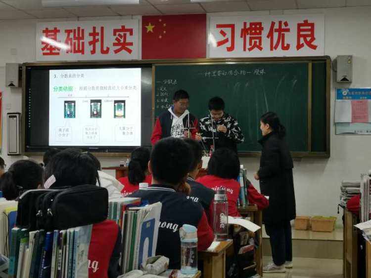 我校为推动学校教育教学质量进一步提高,优化备课组建设,全面提高青年教师教学能力,提升课堂实效,经学校研究决定,组织开展学科示范课暨青年教师比赛课活动。 ![]() 2020级化学组积极响应参加,参赛教师对教案进行精心打磨,组内教师对于上课环节研讨积极参与,团结协作。示范课由组内骨干教师张巧俊执教,张老师为青年教师展示了一堂精彩的高质量化学学科示范课《胶体》张老师的这节课以“驱动性问题”引领课堂,引导学生基于问题学习,在问题解决的过程中充分发展思维能力,体验化学知识的价值;问题设计有梯度,结构完整,课堂流畅,学生印象深刻,极大程度提升了学生的学科素养。 ![]() 高一全体教师认真学习 ![]() 青年教师李丹丹讲授《胶体》用电影片段导入,引发学生浓厚的学习兴趣,整堂课思路清晰,内容条理,环环相扣,过渡自然;将知识与生活实际紧密联系,引用大量生活实例,引导学生用所学知识解释生活中的相关现象,充分体现了化学来源于生活又服务于生活的理念;设置了学生实验、分组讨论等环节,让学生自主发现知识,学生的参与度高,充分体现了学生的主体作用和教师的主导作用。 ![]() 青年教师武小云讲授《胶体》通过动画片的导入方式,强烈引发了学生对胶体的学习兴趣,然后通过对比实验(丁达尔效应)使学生在观察对比中抓住粒子直径大小这一关键,认识溶液、浊液、胶体的本质特征,从而突破本节课难点,然后针对胶体分类、制备和性质设计了学生实验,学生在教师的指导下,顺利完成,学生的实验操作能力得到提升,观察能力得到提高,体现新课程理念下的化学教学活动以学生形成能力为核心,以学生自主科学探究为核心的思想,并且在实验过程中设计了分析、交流与思考的环节,课堂效果显著。 ![]() 青年教师任小星讲授《胶体》以电视剧中的狙击手杀人片段引入,提出问题“狙击手为什么会被警察发现而被一枪致命?”引发学生的探究兴趣,激发学生的学习热情。接着以简单问题入手,检测学生预习情况,引入分散系的概念,之后循序渐进,注重对知识的归纳与总结,知识与生活的联系,让学生在学习中始终能感受到化学与生活的密不可分,学会用知识来解释生活中的现象。 ![]() 青年教师刘春卫讲授《胶体》从新冠肺炎的传播途径之一气溶胶传播引入胶体分散系的概念,设计学生演示实验---过滤来探究胶体与浊液、溶液的分离和提纯,提高了学生的科学素养,提高学生在实践中学习的能力;在讲授胶体的性质时,紧扣胶体的本质特征,举例纳米材料碳纳米管的性质说明粒径改变对物质性质的影响,拓展了学生的科学视野;同时设计了学生实验,提高了学生对化学实验、科学方法在科学研究中有重要作用的认识;在应用的讲授上选择了多种情景素材,突出了反应原理与实际生活、生产的密切联系,大大提高了学生的学习兴趣。 ![]() 青年教师徐倩倩讲授《胶体》以问题引领课堂,引导学生基于问题学习,在解决问题的过程中充分发展思维能力,结合生活实例体验化学知识的价值,问题设计开放合理,结构知识完整,课堂上注重学生逻辑能力思维的培养,学生的主体性得到充分体现,学生参与面广,参与的质量和有效度高,达到了师生互动的良好效果。 ![]() 学生分组实验——胶体的性质探究。 ![]() ![]() 各位评委老师认真倾听,赛后对各位青年教师的课堂进行了详细的点评。评委们肯定了青年教师们的精心准备及在课堂中展现出的优良的专业素质,同时也勉励青年老师们要不断加强课堂教学的研究,提升教育教学水平。