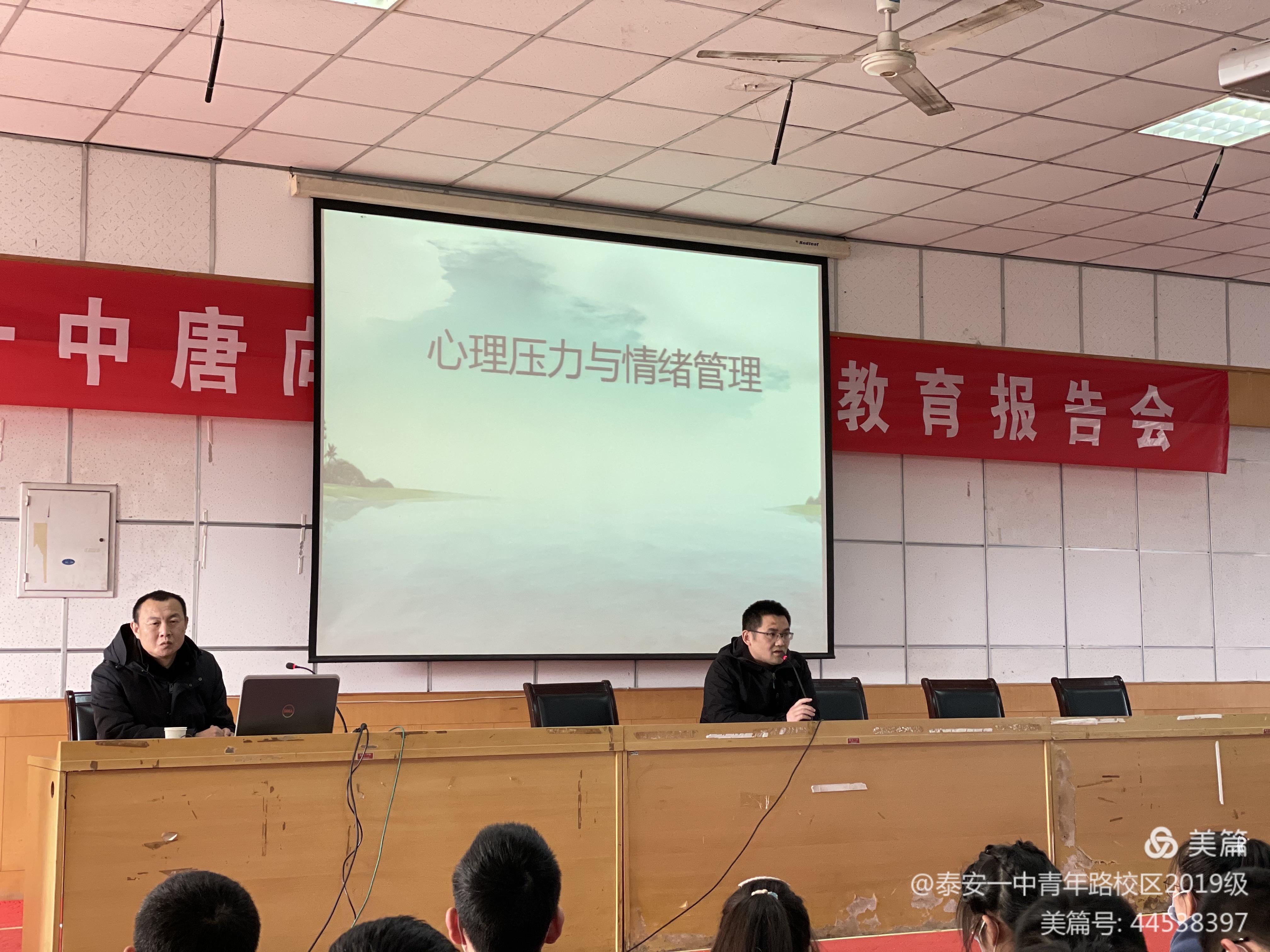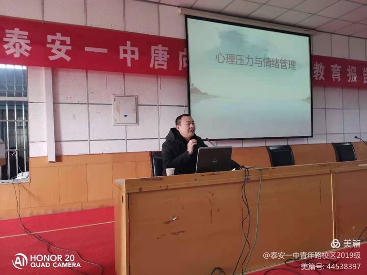 为让同学们了解自己的心理状况,调整自己的心理状态,缓解自己的心理压力,2020年12月6日泰安一中教科所特邀请心理专家唐向东教授为2019级全体学生作了一场题为《心理压力与情绪管理》的心理健康教育主题报告会,大会由级部王利主任主持召开。