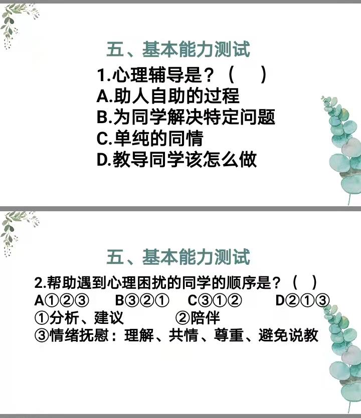 随后进行了心理委员基本能力测试,巩固强化心理委员在具体工作中应注意的要点。